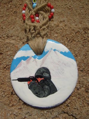 Açık cezaevinde kendi imkanları ile mavi boncuk üzerine el işi göz nuru eserleri Ne yazık ki bu değerli eserleri  terminalde kaybetti. Bende ismini unuttuğum arkadaşımızın resmini koyarak onu bir daha anmak istedim (Orbay arkadaşımızın hatırladığı isim Yıldıray  Babuccuoglu)
